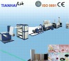 PS Foam Sheet Extruding Machine (TH-70/90) Itadopts Gentian type double-stage series high foam technology. The raw material is general polystyrenegranule. In the extruding process,foam agentis injected at high pressure. After extruding , foaming, cooling, shaping and hauling off, it is winding to finished ps foam sheet rolls. After vacuum forming system, the finished PS foaming sheetcan be made into variety of packaging vessels ,such as fast food box ,aquatic plate,supermarket tray ,cake tray ,KT board ,instant noodle bowl ,foam tray etc. It is widely used in the packing for food ,fruit ,advertising industrial products and so on . This equipment adopts high speed hydraulic filter changer which has steady feature, can realize change the filter immediately without stopping the machine. The foaming shaping machine adopts PLC control, touch screen operation, easily to operate. Technical data:parameter Unit ModelTH-70/90TH-105/120TH-110/130CapacityKG/H70-100150-230250-280Sheet thicknessMM0.8-41-51-5Sheet widthMM480-1040600-1080500-1100Foaming rate10-22Cooling methodwind cooling & water coolingCutting methodSingle and double cuttingDouble cuttingButagas pressureMPa1.5Installed powerKW120200220Installation DimensionM3×4×253×4.5×303×4.5×32Power supply380V 50HZ 220V 60HZ 3 phase 380V 50HZ 3 phase 220V 60HZ