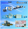 PS Foam Sheet Extrusion Line (TH-105/120) 1. adopts Gentian type double-stage series high foam technology. The raw material is general polystyrenegranule. 2. In the extruding process,foam agent (Butane gas or LPG) is injected at high pressure. After extruding , foaming, cooling, shaping and hauling off, it is winding to finished ps foam sheet rolls. 3. After vacuum forming system, the finished PS foaming sheetcan be made into variety of packaging vessals such as fast food box ,aquatic plate,supermarket tray ,cake tray ,KT board ,instant noodle bowl ,foam tray etc. 4. It is widely used in the packing of food ,fruit ,advertising ,industrial products and so on . 5. This equipment adopts high speed hydraulic filter changer which has steady feature, can realize change the filter immediately without stopping the machine. 6. The foaming shaping machine adopts PLC control, touch screen operation, easily to operate. (picture of mold head)Technical data:parameter Unit ModelTH-70/90TH-105/120TH-110/130CapacityKG/H70-100150-230250-280Sheet thicknessMM0.8-41-51-5Sheet widthMM480-1040600-1080500-1100Foaming rate10-22Cooling methodwind cooling & water coolingCutting methodSingle and double cuttingDouble cuttingButagas pressureMPa1.5Installed powerKW120200220Installation DimensionM3×4×253×4.5×303×4.5×32Power supply380V 50HZ 220V 60HZ 3 phase 380V 50HZ 3 phase 220V 60HZ